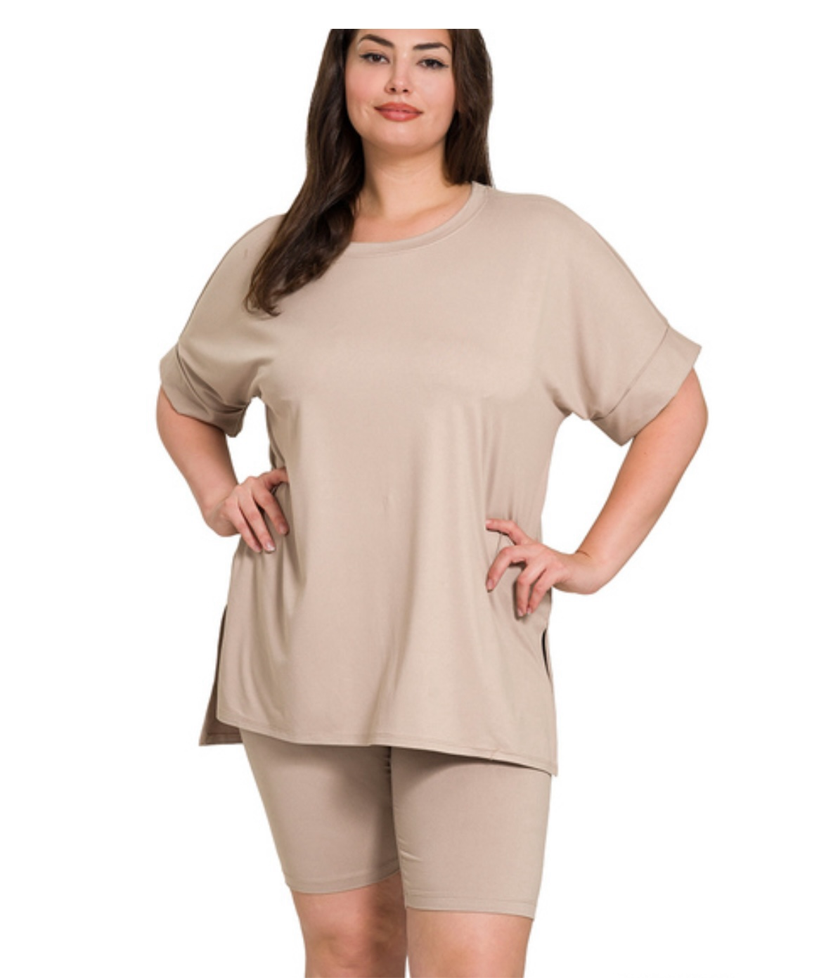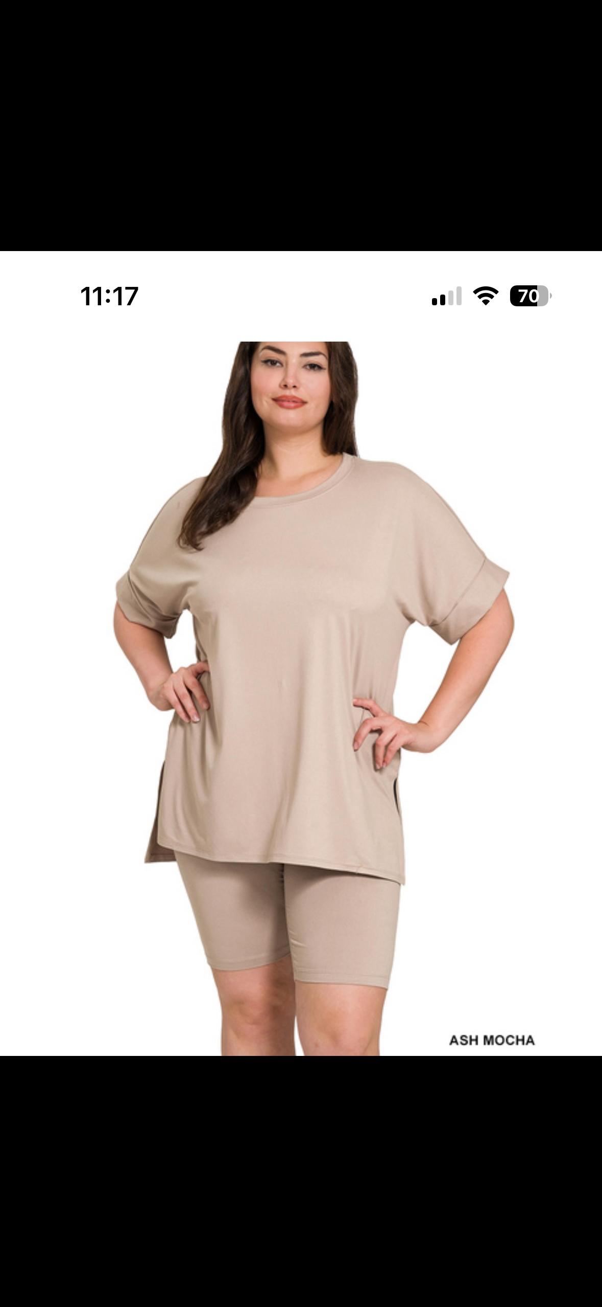 Butter soft two piece short set. Colors available in ash mocha. Dress but up or down. Very comfy