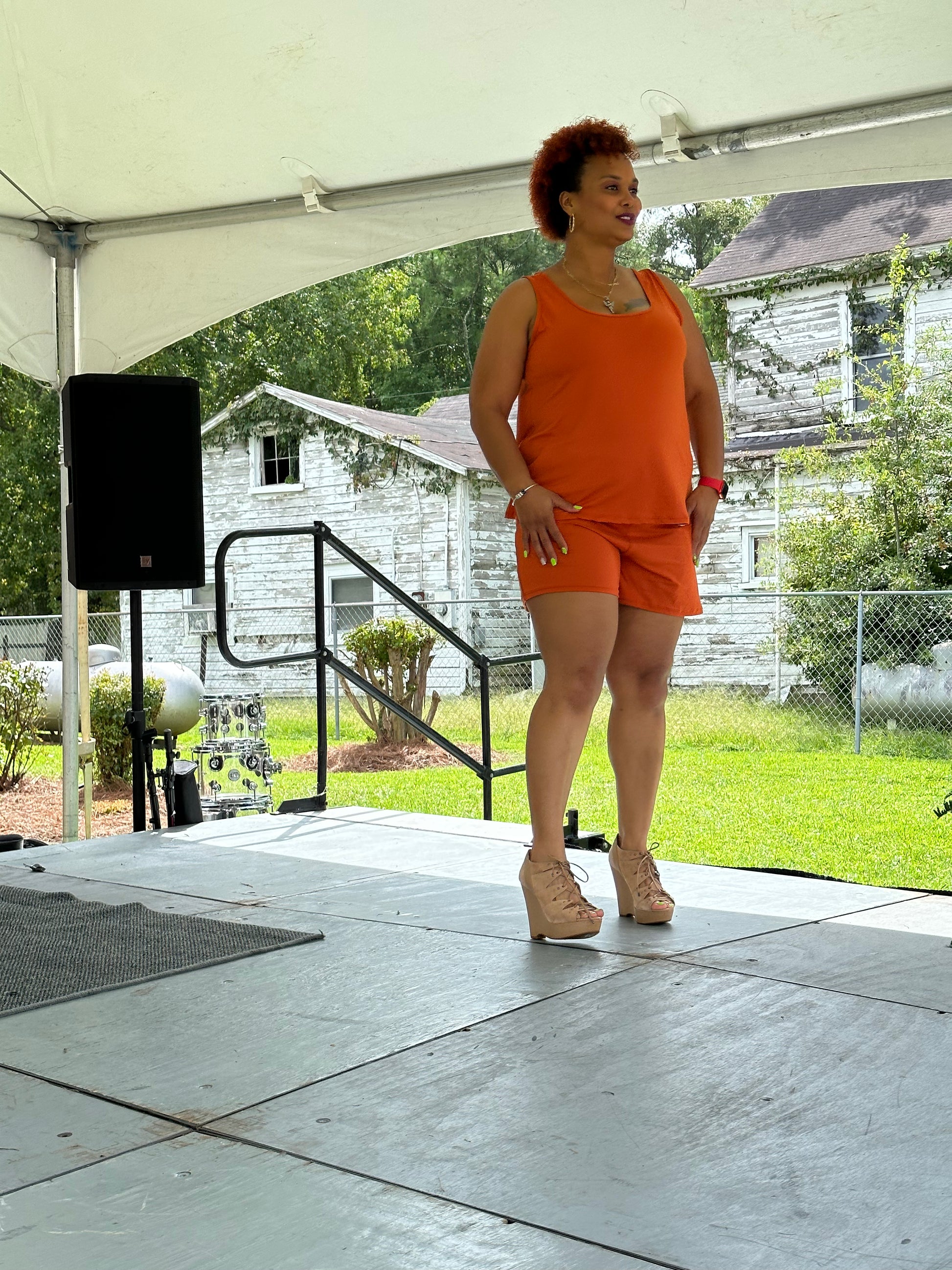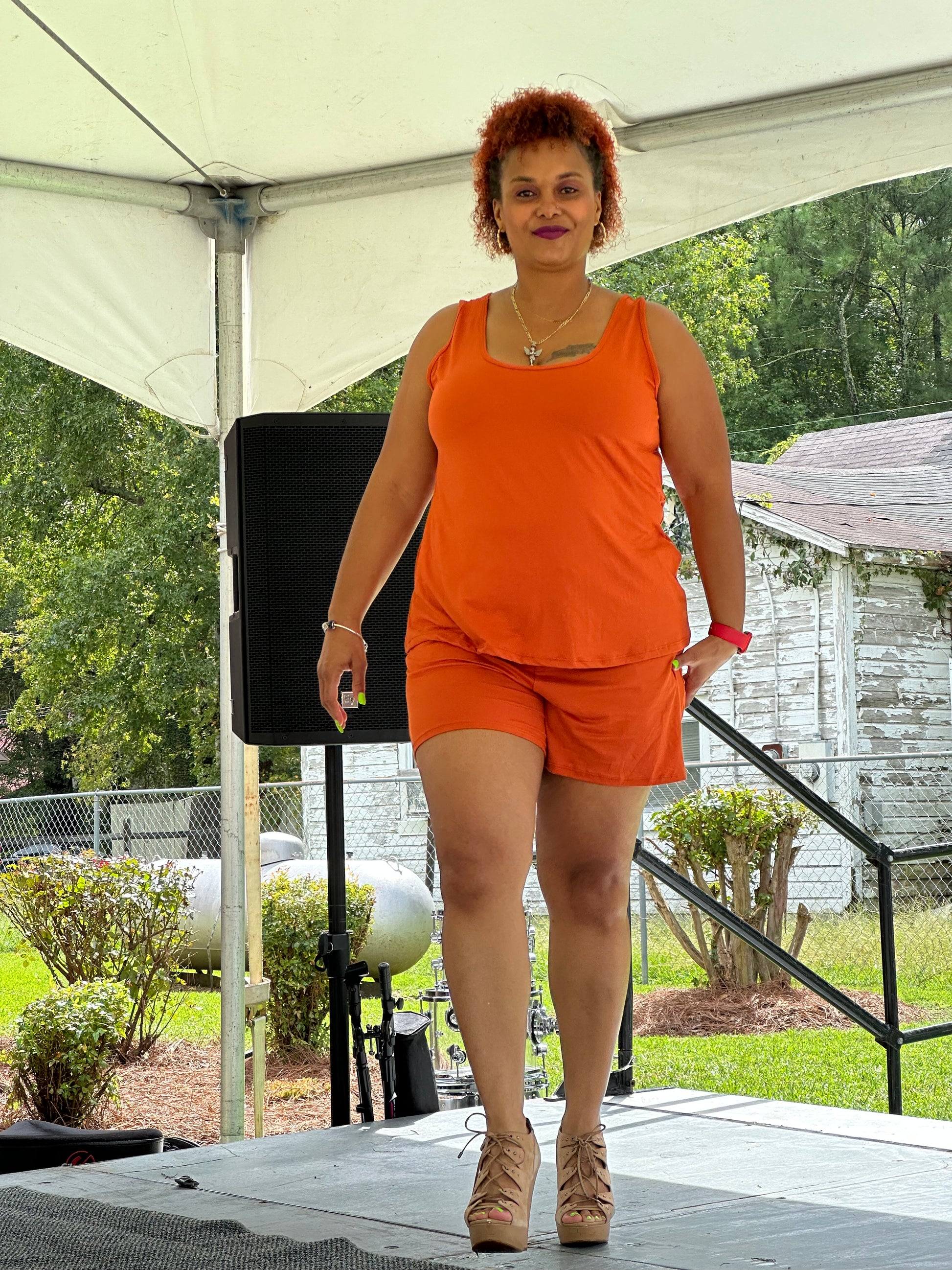 Mango Coffee tank top short set. It is fun, flirty, and easy to move about in. Stroll the island and grab a cocktail at the beachside bar. For the evening, grab your girls and dance the night away in a pair of high heeled sandals. This set can easily go from day-party to night with the right shoes of course.